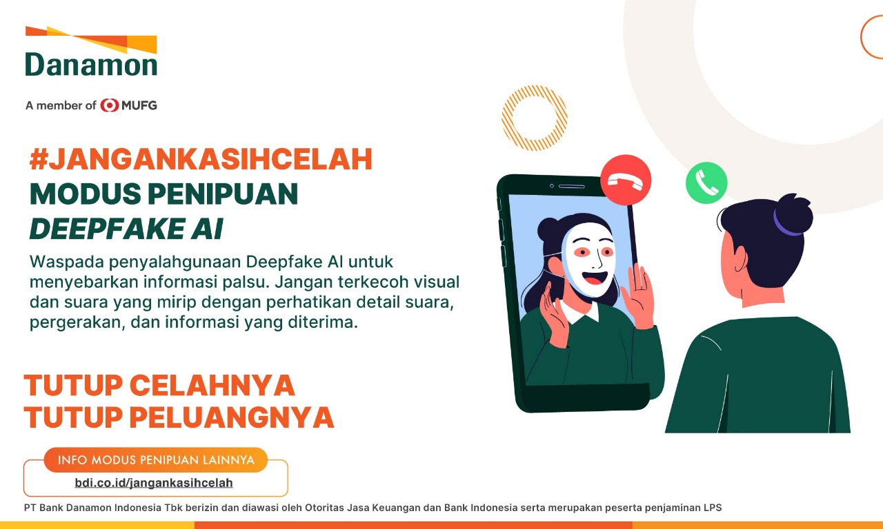 Danamon mengajak seluruh nasabah dan masyarakat untuk bersama-sama meningkatkan kewaspadaan terhadap teknik penipuan siber yang menggunakan teknologi kecerdasan buatan