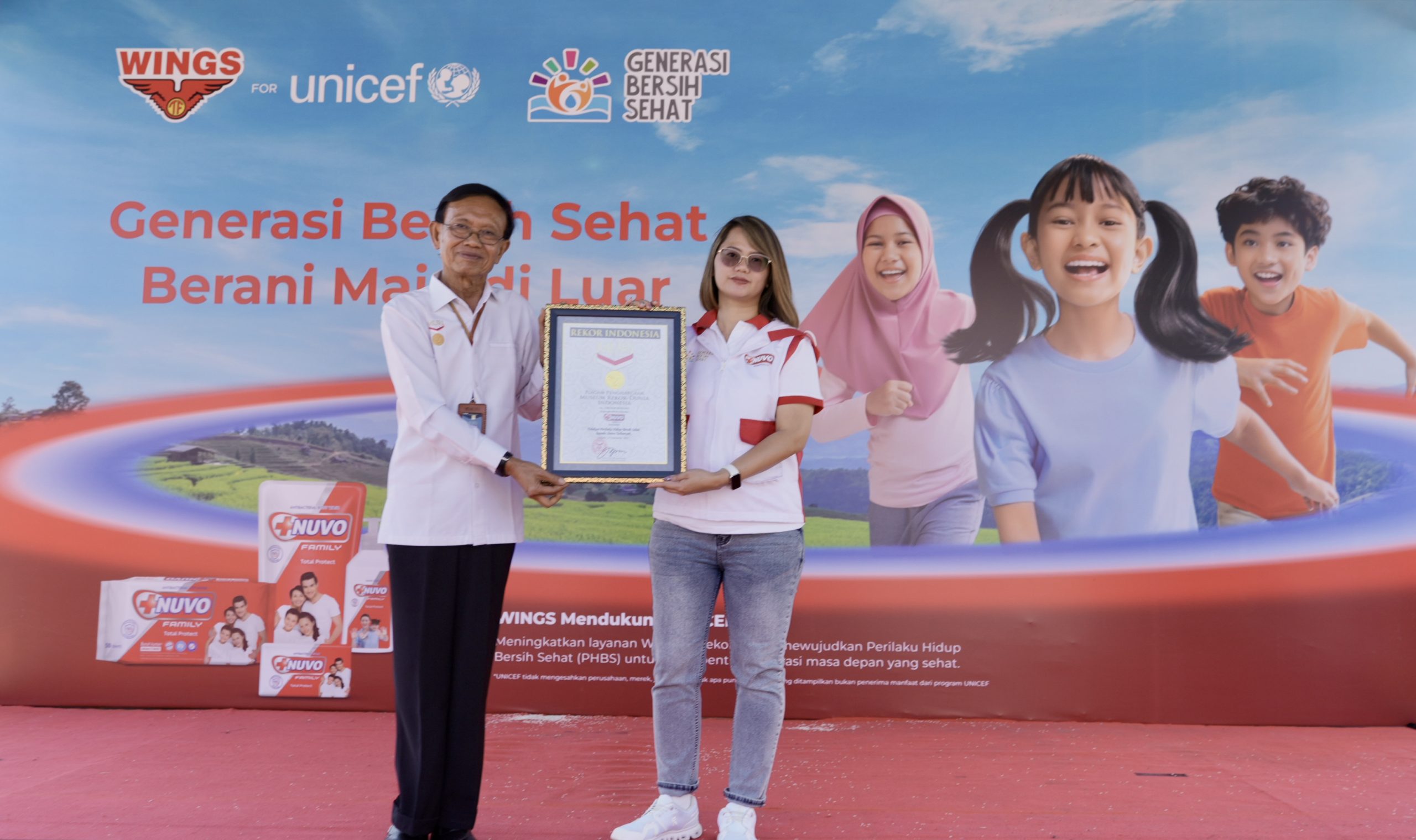 Pada kesempatan ini, NUVO Family resmi mencetak Rekor MURI Edukasi Perilaku Hidup Bersih Sehat dengan Siswa Terbanyak di Indonesia setelah membekali 2.232 murid sekolah dasar sebagai Generasi Bersih Sehat di Aceh dan Sulawesi Selatan.